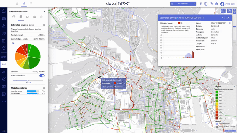 Optimierung der Lebensdauer des Kanalnetzes durch Einblicke in den geschätzten und beobachteten Zustand.